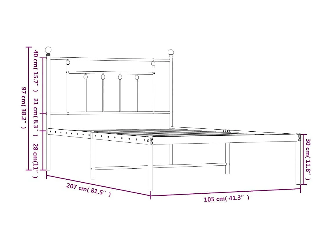 Lit simple | Lit adulte, enfant | Cadre de lit métal avec tête de lit noir 107x203cm