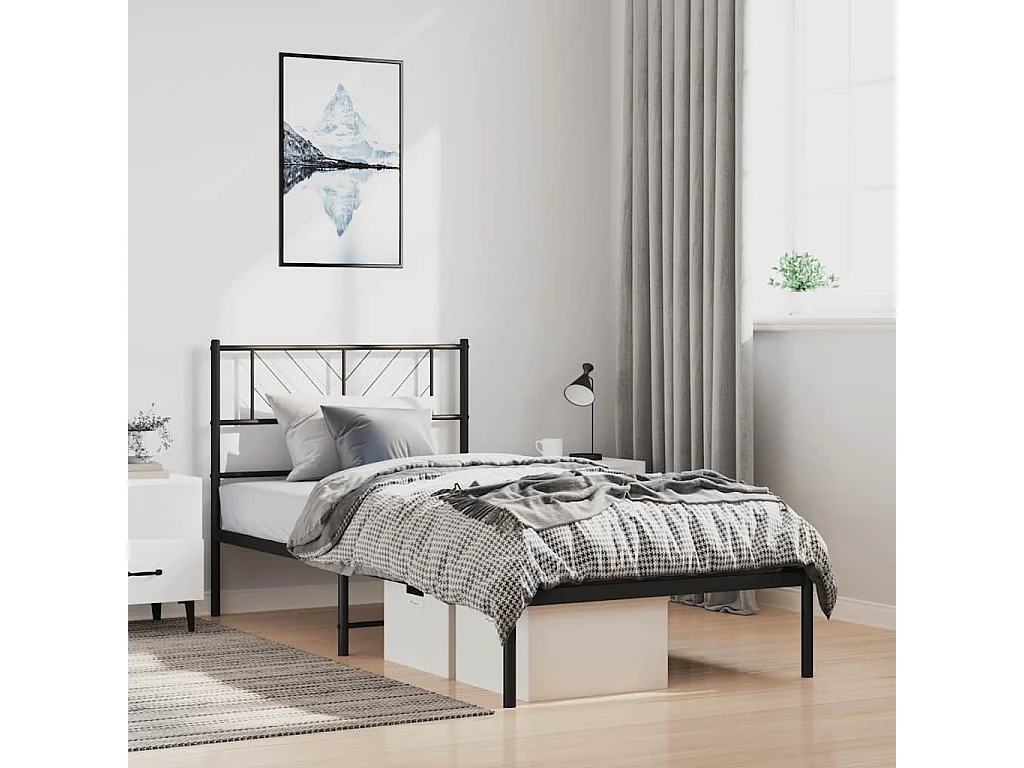 Lit simple | Lit adulte, enfant | Cadre de lit métal avec tête de lit noir 107x203cm