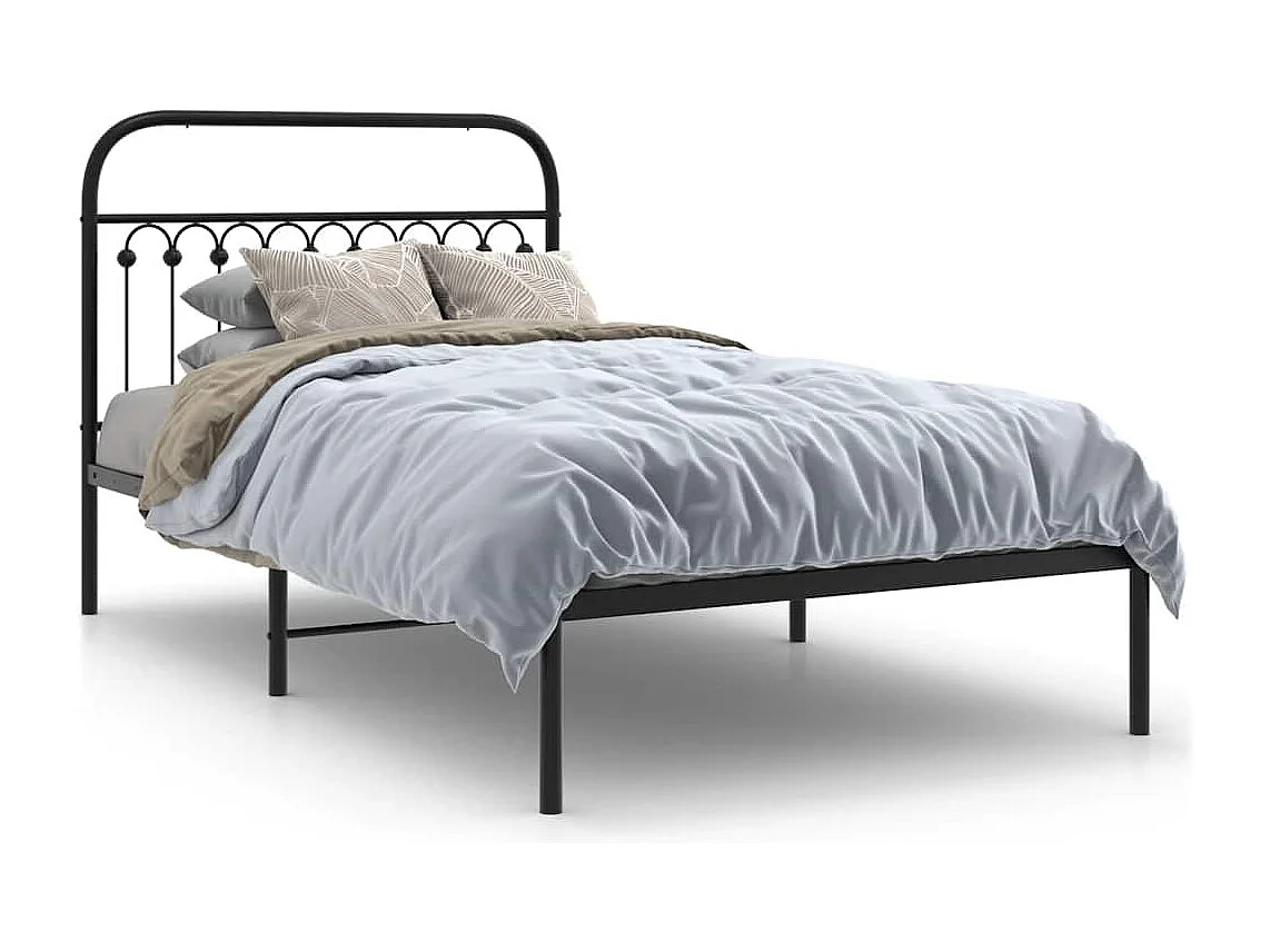 Lit simple | Lit adulte, enfant | Cadre de lit métal avec tête de lit noir 107x203cm