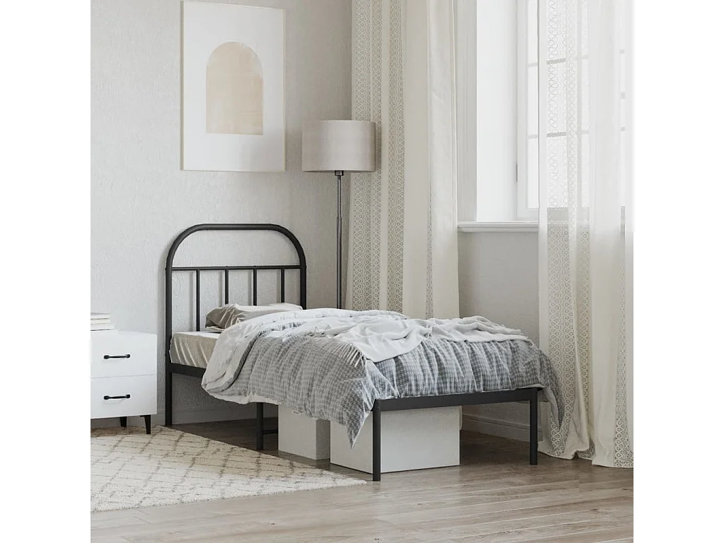 Cadre de lit métal avec tête de lit/pied de lit noir 75x190 cm