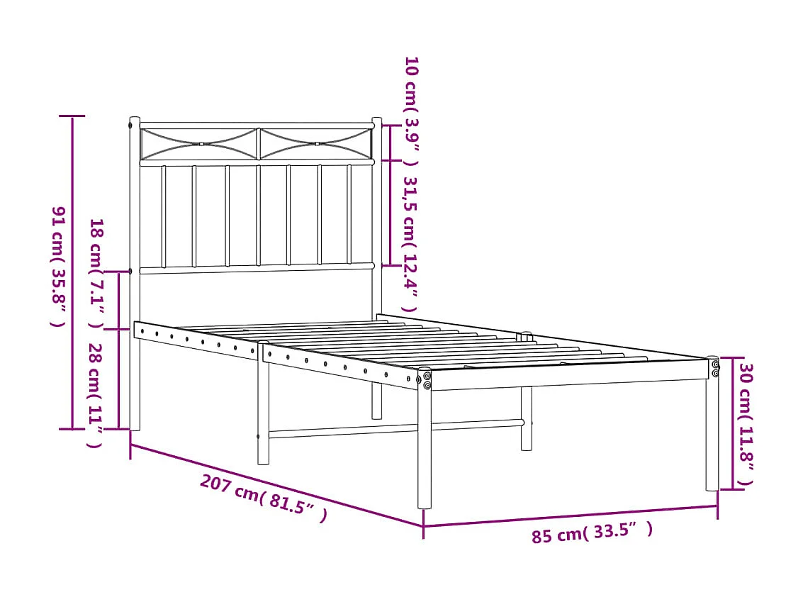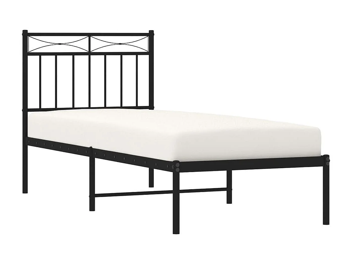 Lit simple | Lit adulte, enfant | Cadre de lit métal avec tête de lit noir 80x200 cm