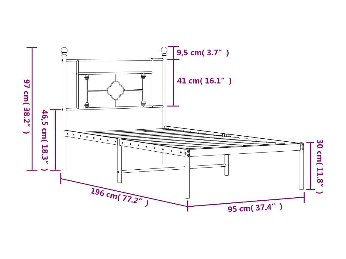 Lit simple | Lit adulte, enfant | Cadre de lit métal avec tête de lit noir 90x190 cm