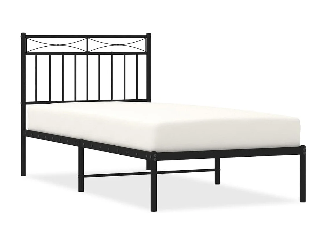 Lit simple | Lit adulte, enfant | Cadre de lit métal avec tête de lit noir 90x190 cm