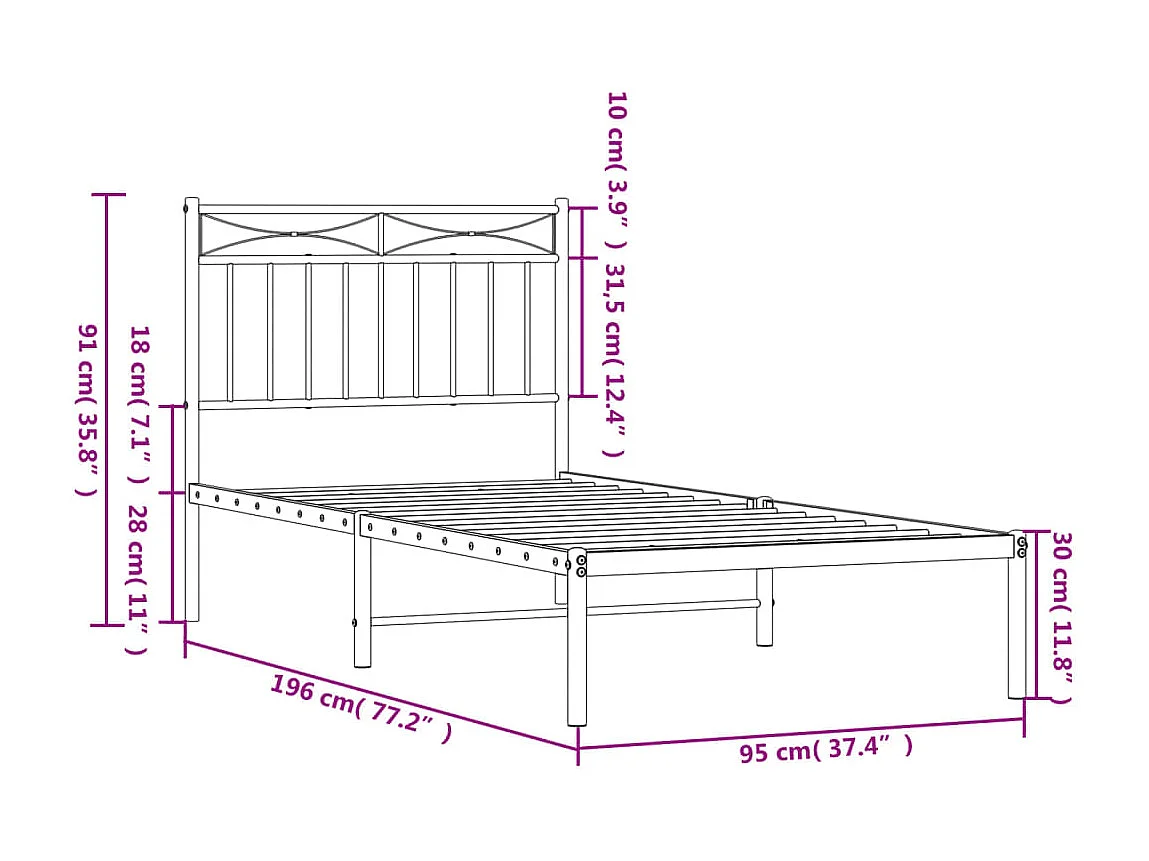 Lit simple | Lit adulte, enfant | Cadre de lit métal avec tête de lit noir 100x190cm