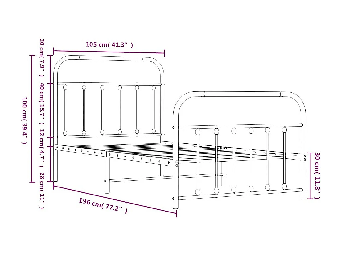 Lit simple | Lit adulte, enfant | Cadre de lit métal et pied de lit blanc 100x190 cm