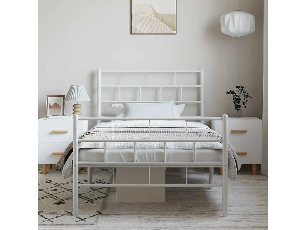 Lit simple | Lit adulte, enfant | Cadre de lit métal et pied de lit blanc 100x190 cm