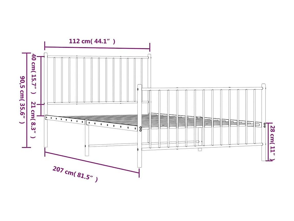 Lit simple | Lit adulte, enfant | Cadre de lit métal et pied de lit blanc 107x203 cm