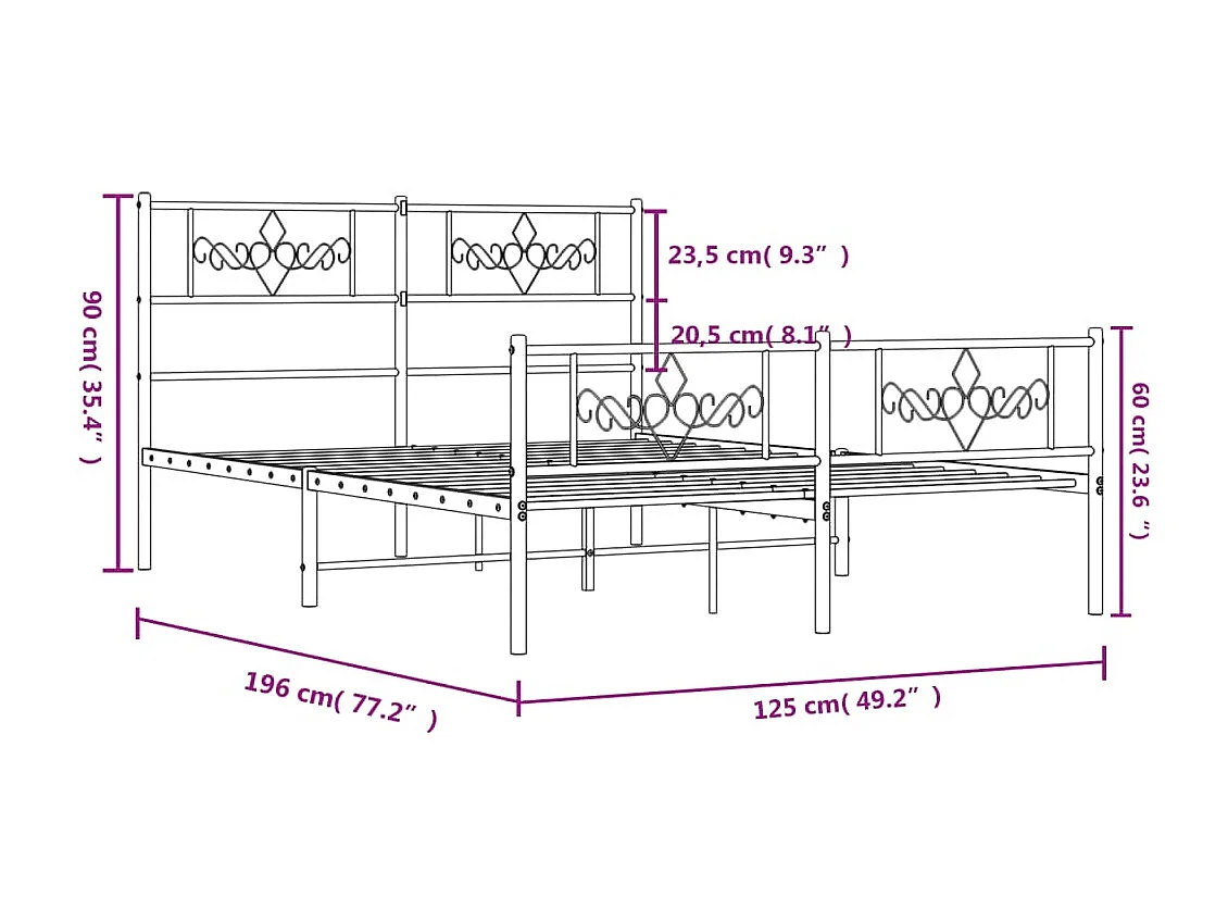 Cadre de lit métal avec tête de lit-pied de lit blanc 120x190