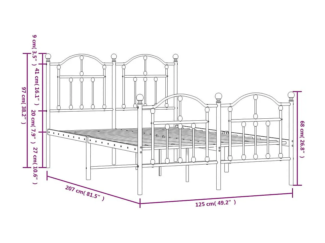 Lit simple | Lit adulte, enfant | Cadre de lit métal et pied de lit blanc 120x200 cm