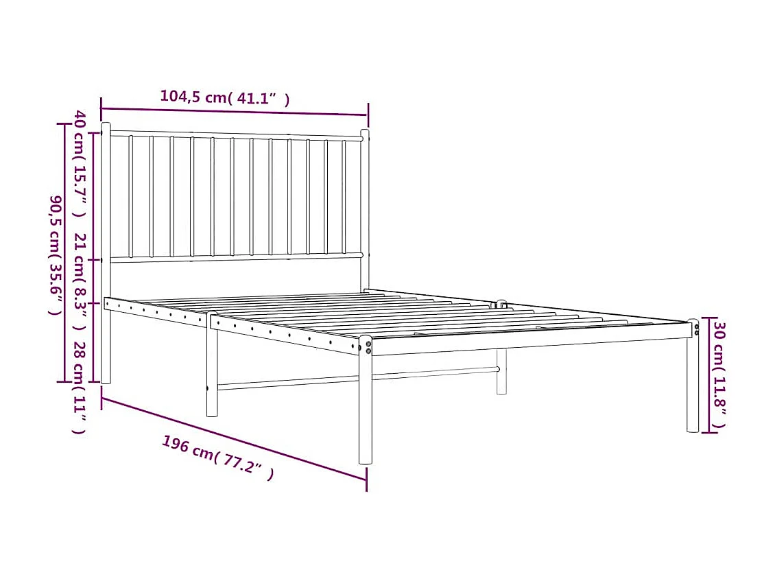 Lit simple | Lit adulte, enfant | Cadre de lit métal avec pied de lit blanc 90x190cm