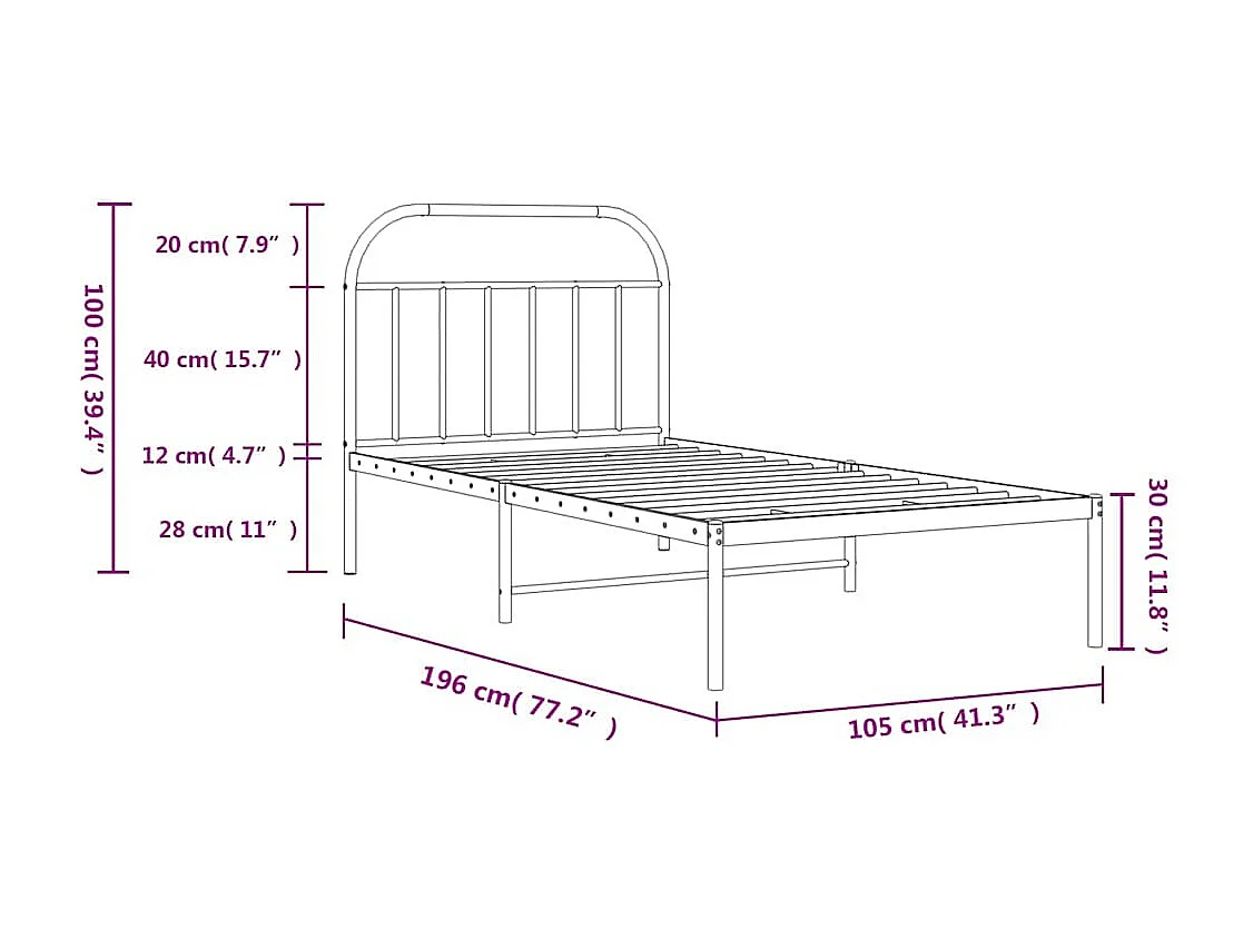 Cadre de lit sans matelas pliable blanc 90x190 cm acier