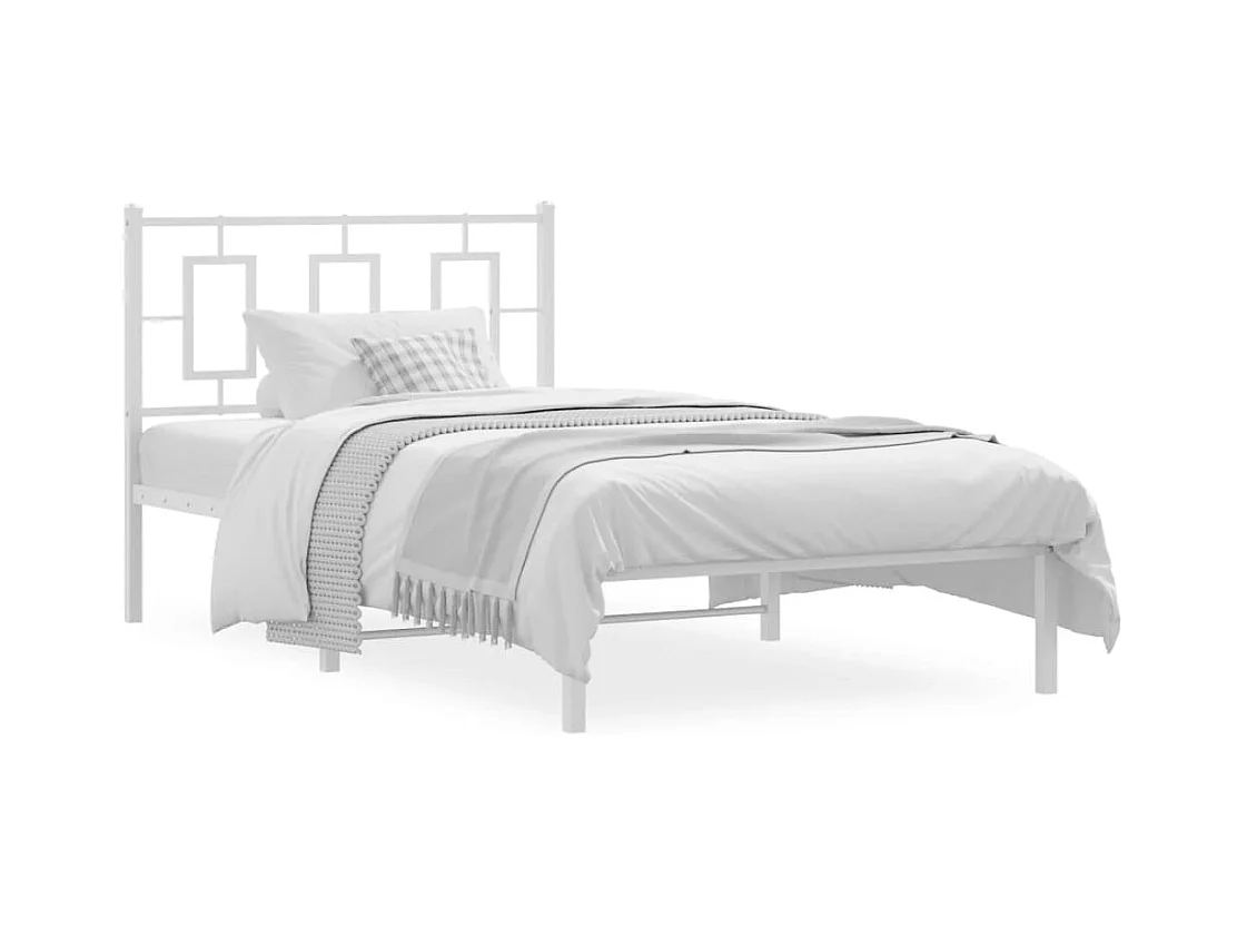Cadre de lit métal avec tête de lit blanc 90x190 cm