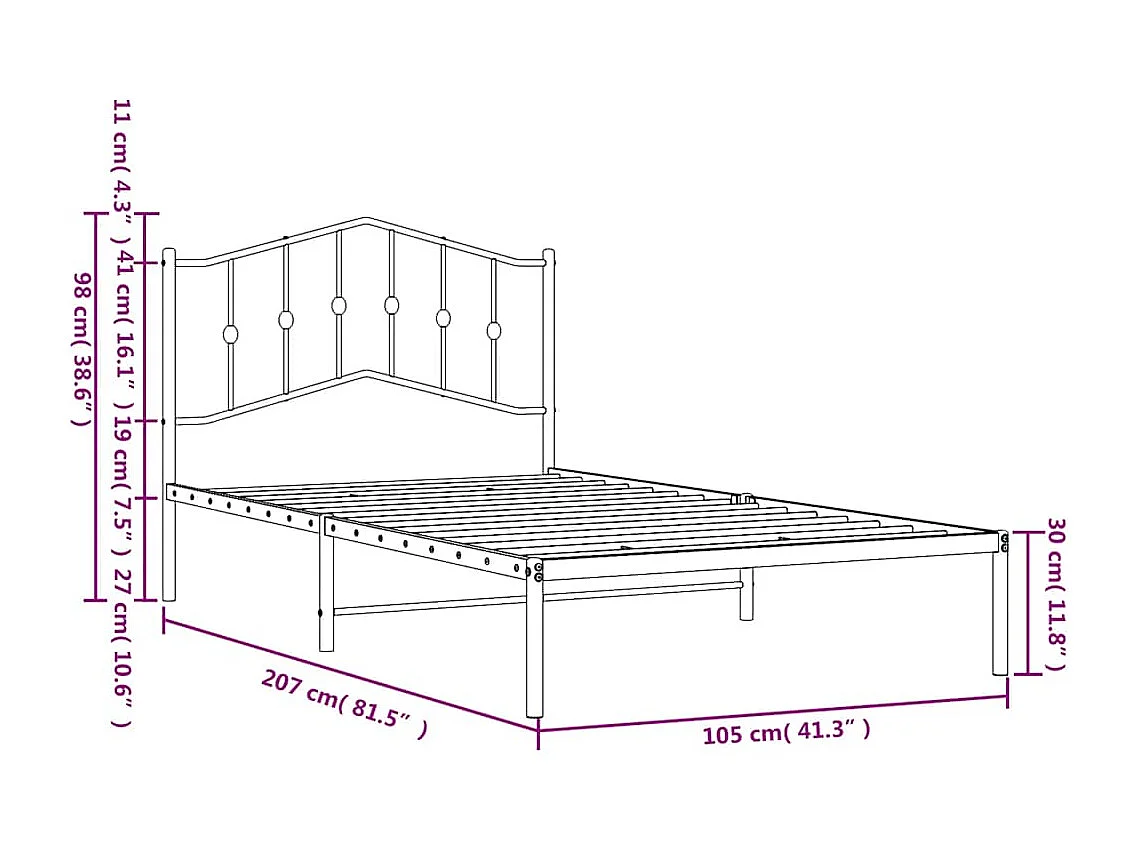 Lit simple | Lit adulte, enfant | Cadre de lit métal et tête de lit blanc 107x203 cm