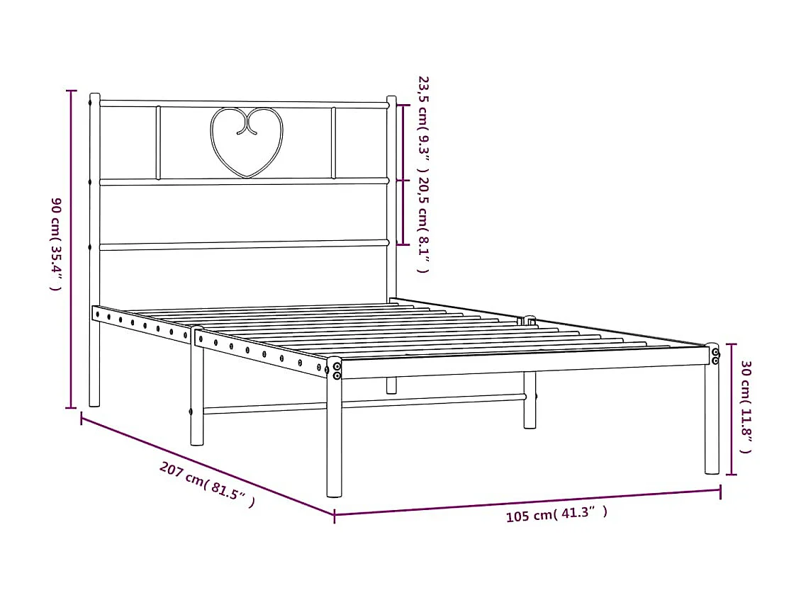 Lit simple | Lit adulte, enfant | Cadre de lit métal et tête de lit blanc 107x203 cm