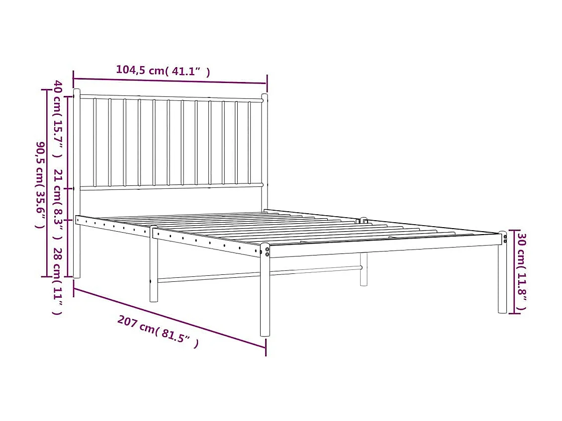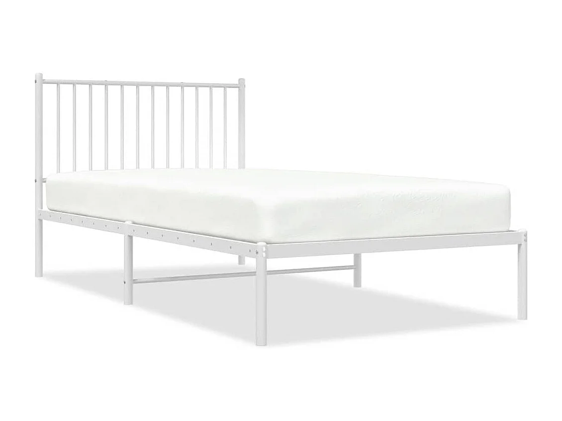 Lit simple | Lit adulte, enfant | Cadre de lit métal et tête de lit blanc 107x203 cm