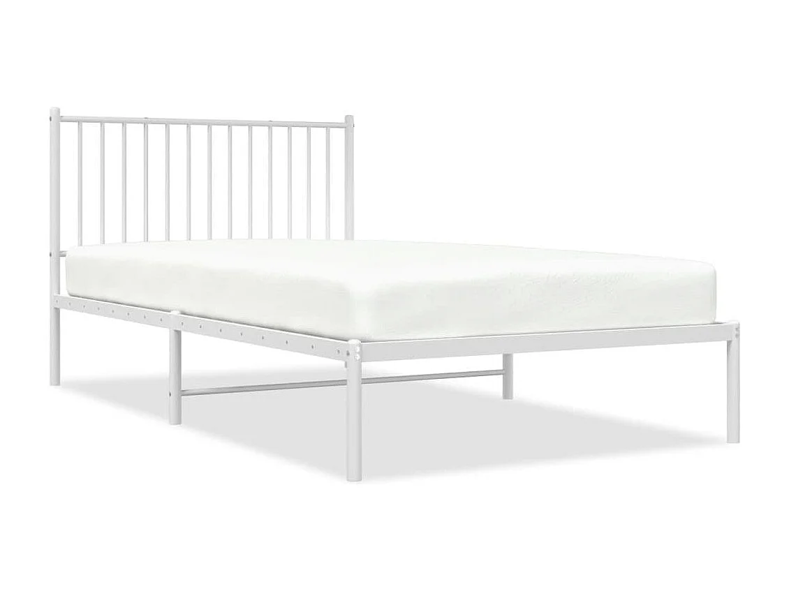 Lit simple | Lit adulte, enfant | Cadre de lit métal et tête de lit blanc 107x203 cm