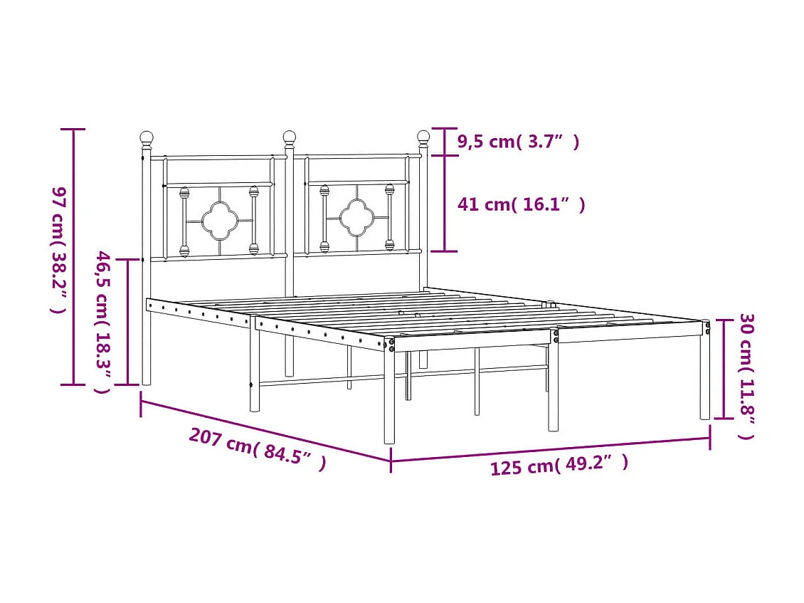 Lit simple | Lit adulte, enfant | Cadre de lit métal et pied de lit blanc 120x200 cm