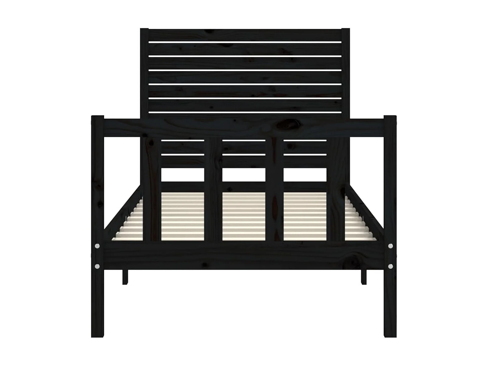 Lit simple | Lit adulte, enfant | Cadre de lit noir bois de pin massif 75x190 cm