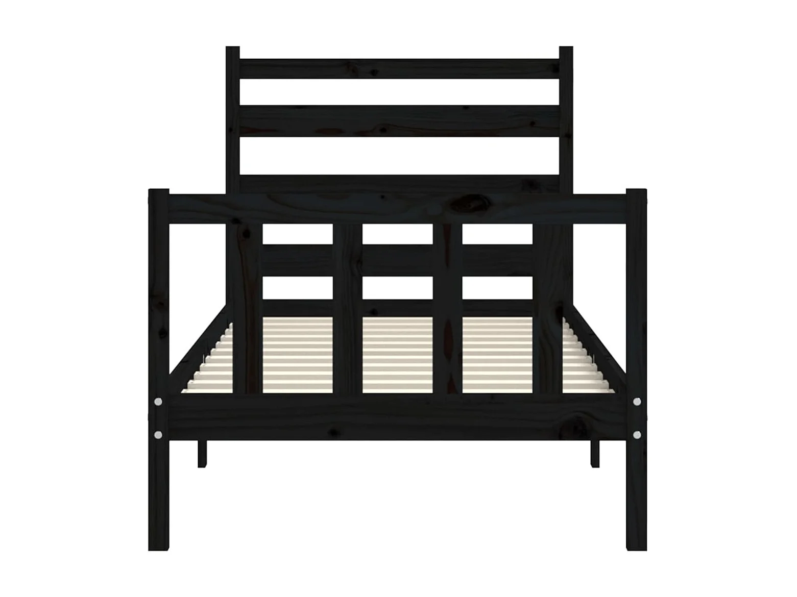 Lit simple | Lit adulte, enfant | Cadre de lit noir bois de pin massif 75x190 cm