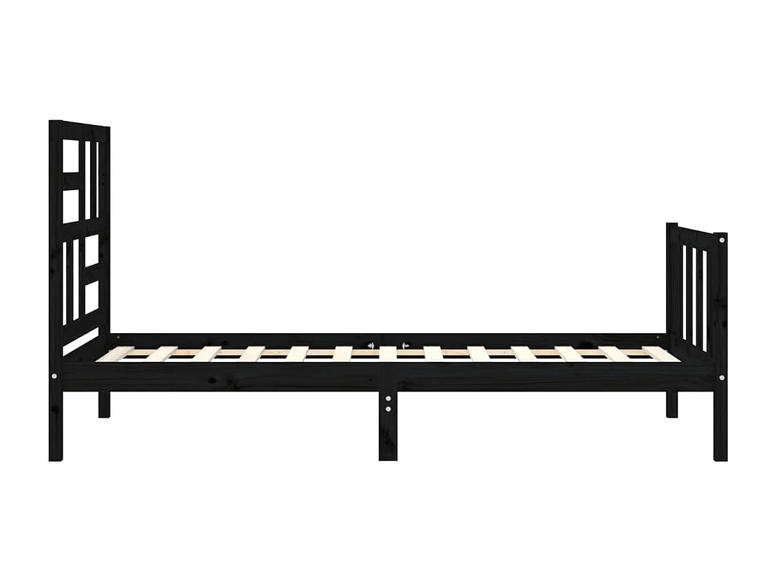Lit simple | Lit adulte, enfant | Cadre de lit noir bois de pin massif 75x190 cm