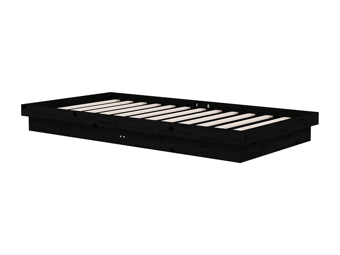 Lit simple | Lit adulte, enfant | Cadre de lit noir bois massif 100x200 cm