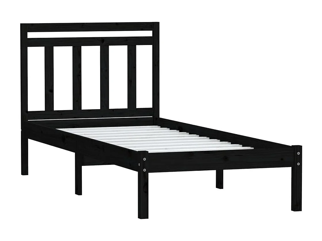 Lit simple | Lit adulte, enfant | Cadre de lit noir bois massif 75x190 cm