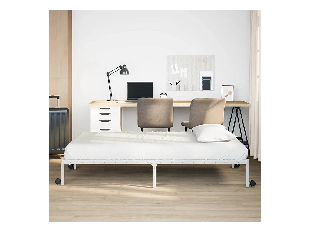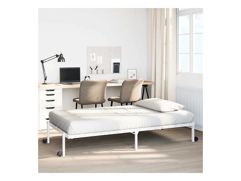 Cadre de lit sans matelas pliable blanc 90x190 cm acier