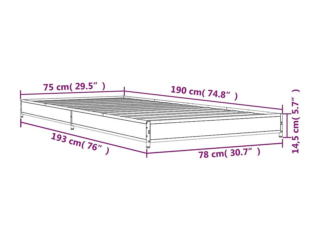 Cadre de lit sans matelas sonoma gris 75x190 cm
