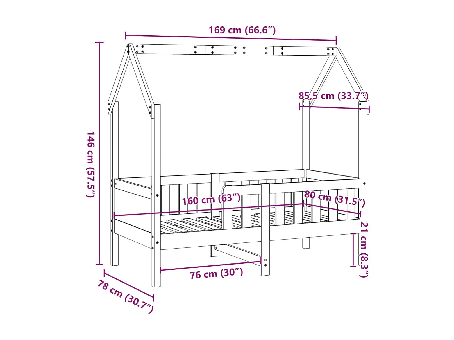 Lit simple | Lit enfant | Cadre de lit d'enfants forme de maison pin 80x160 cm