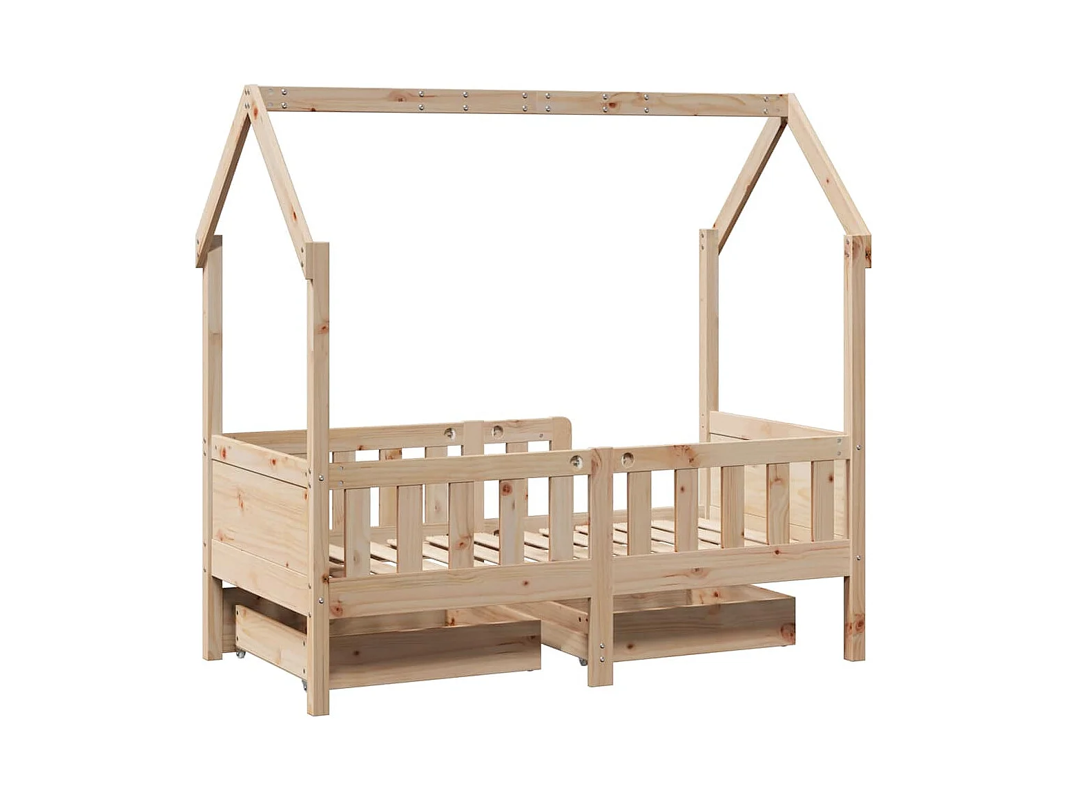 Lit simple | Lit enfant | Cadre de lit enfant avec tiroirs 70x140 cm bois