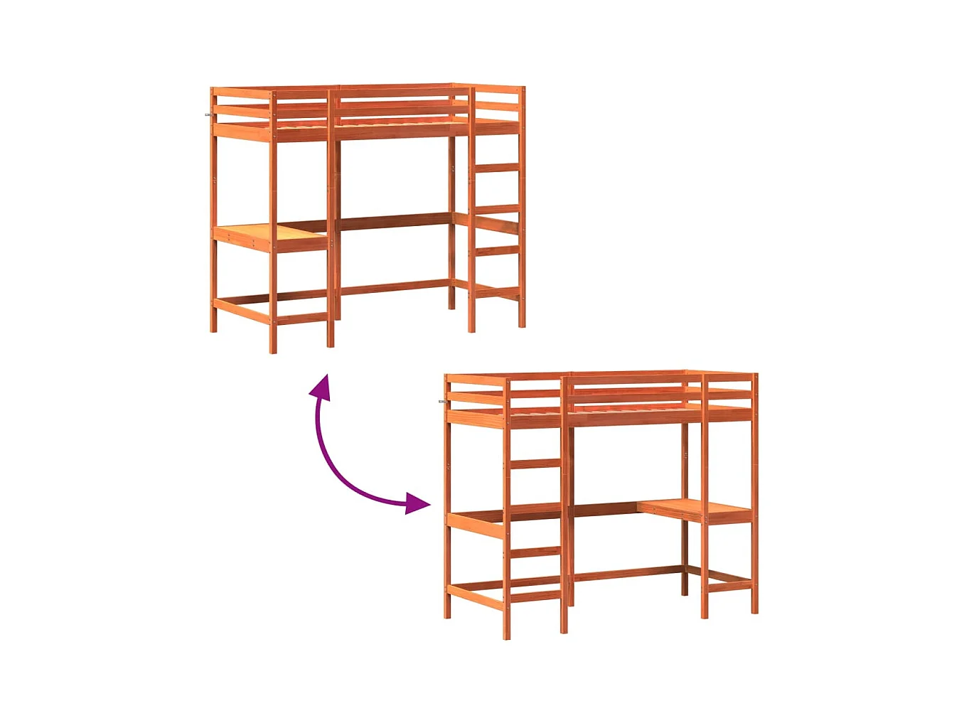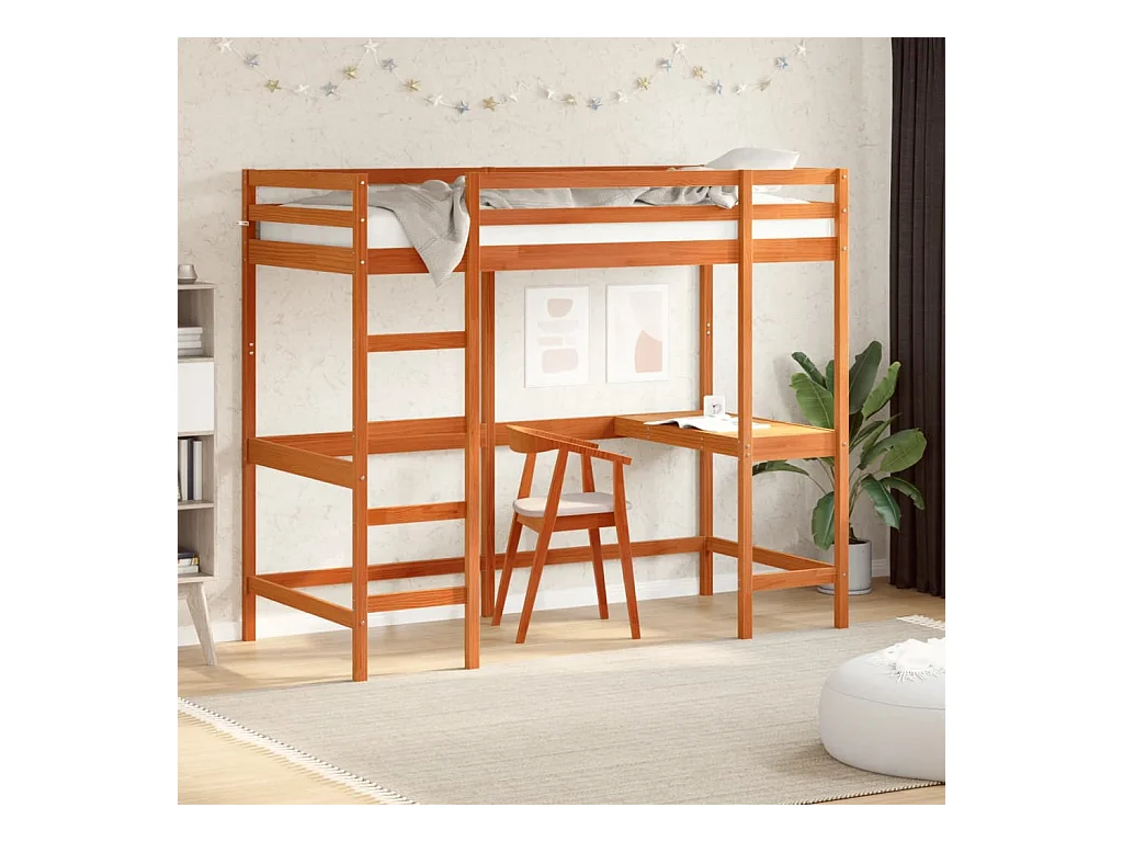 Lit simple-Lit superposé enfant sans matelas cire marron 90x190 cm pin massif