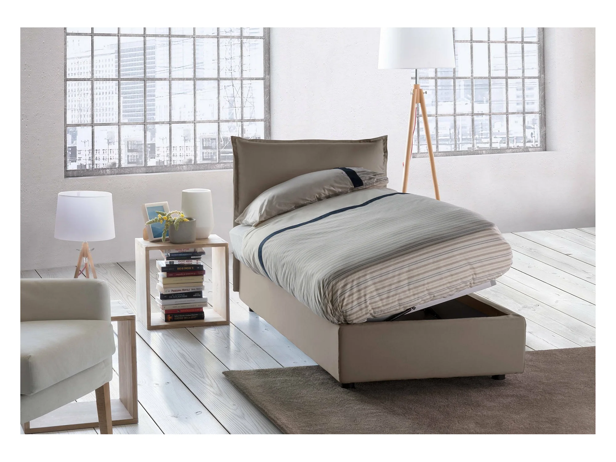 Lit simple Luna, lit coffre avec revêtement en tissu, 100% Made in Italy, ouverture latérale, adapté pour matelas 80x190 cm, gris tourterelle