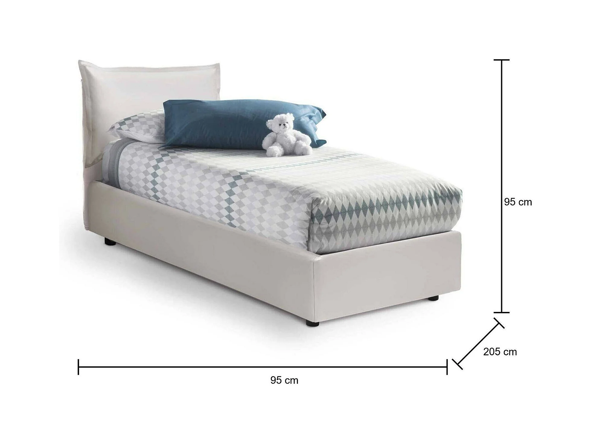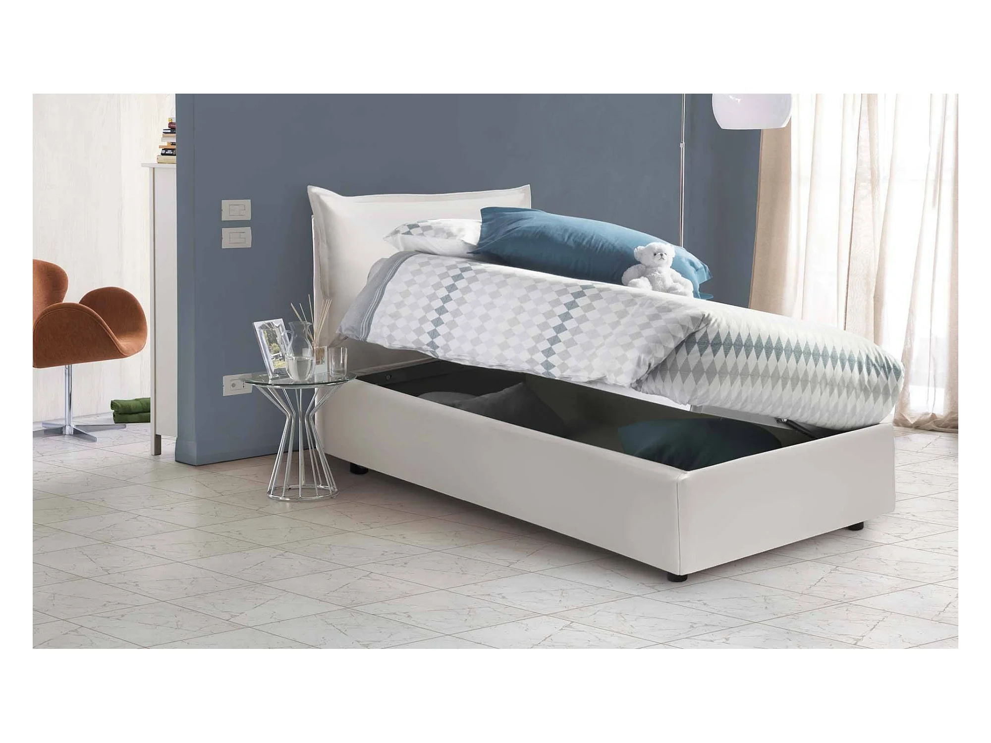 Lit simple Marianna, Lit coffre avec revêtement en éco-cuir, 100% Made in Italy, Ouverture latérale, avec matelas 80x190 cm inclus, Blanc