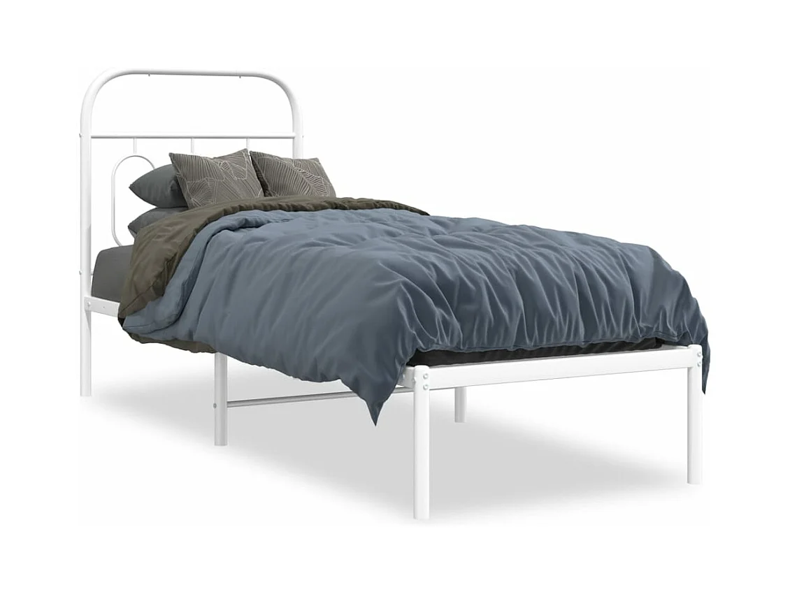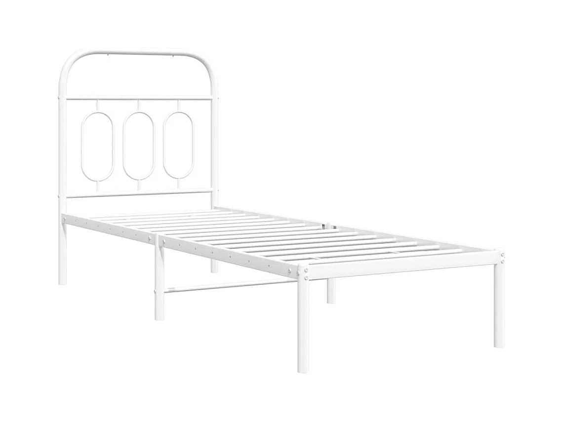 Lit simple métal + tête de lit/pied de lit blanc 75x190 cm FR75916