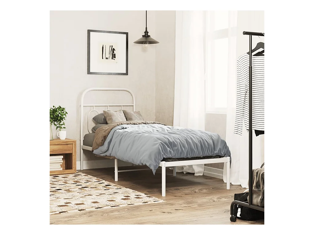 Lit simple métal + tête de lit/pied de lit blanc 75x190 cm FR72849