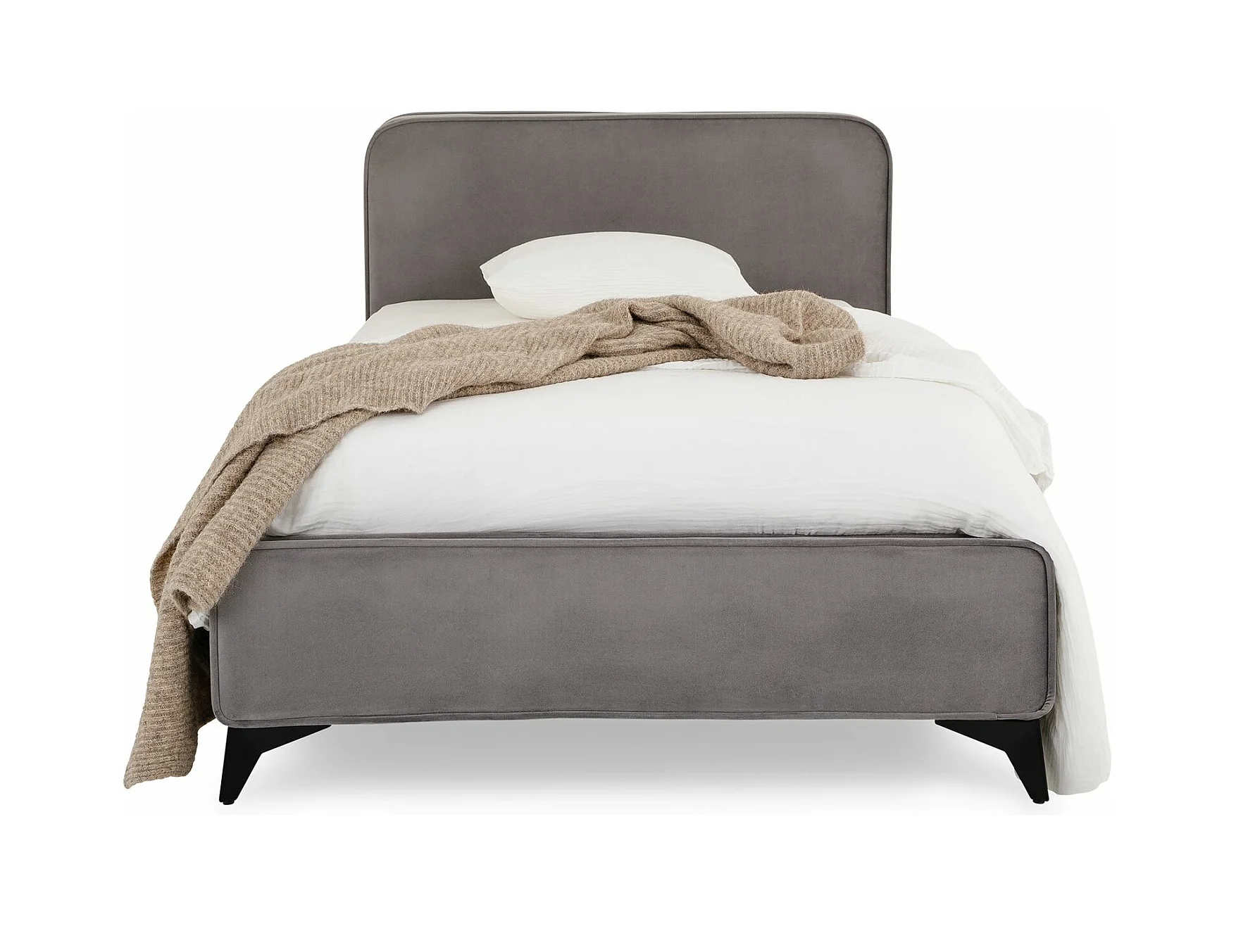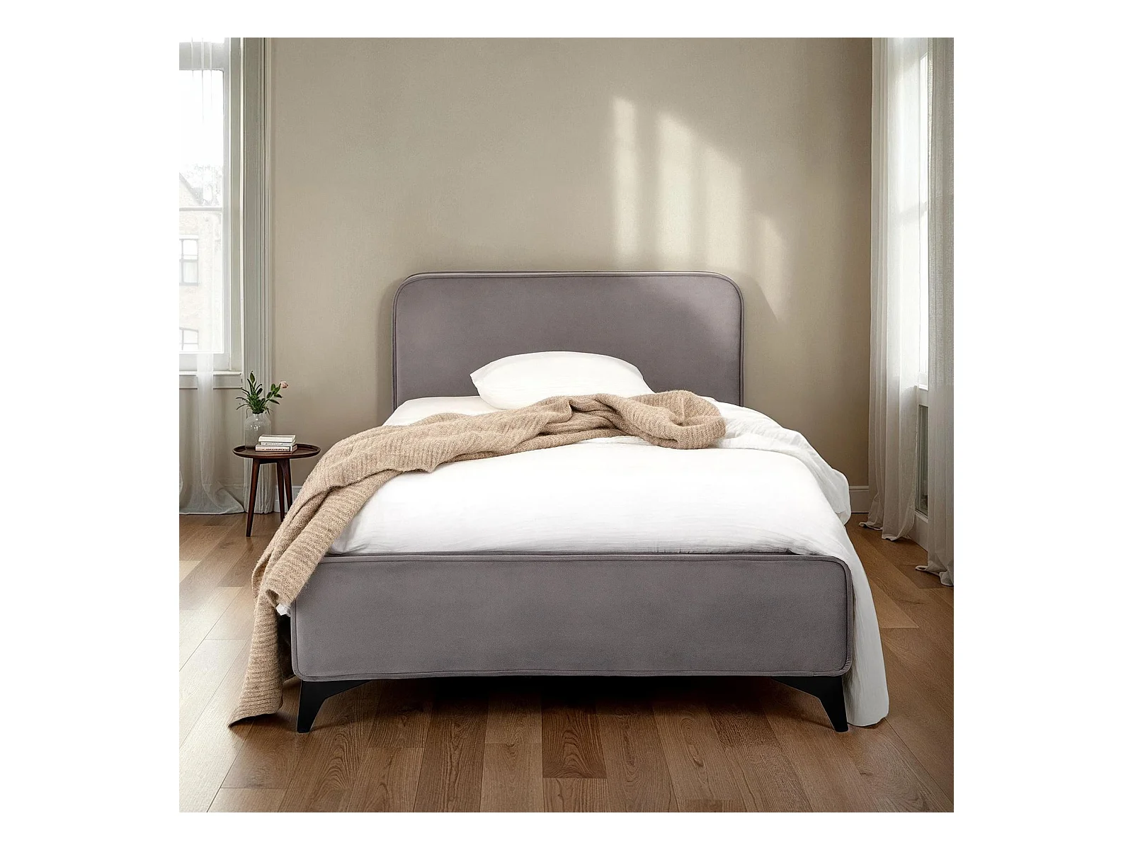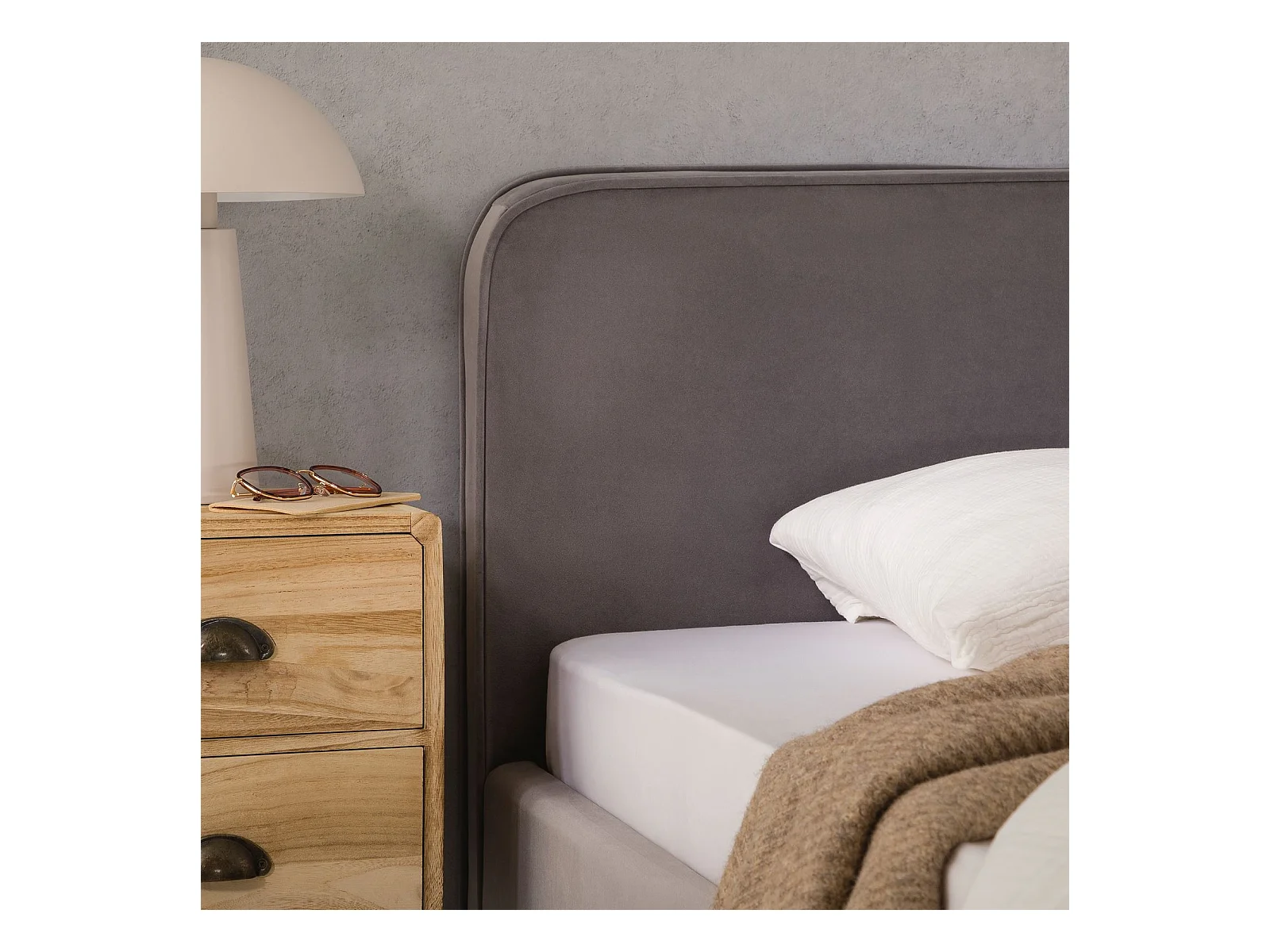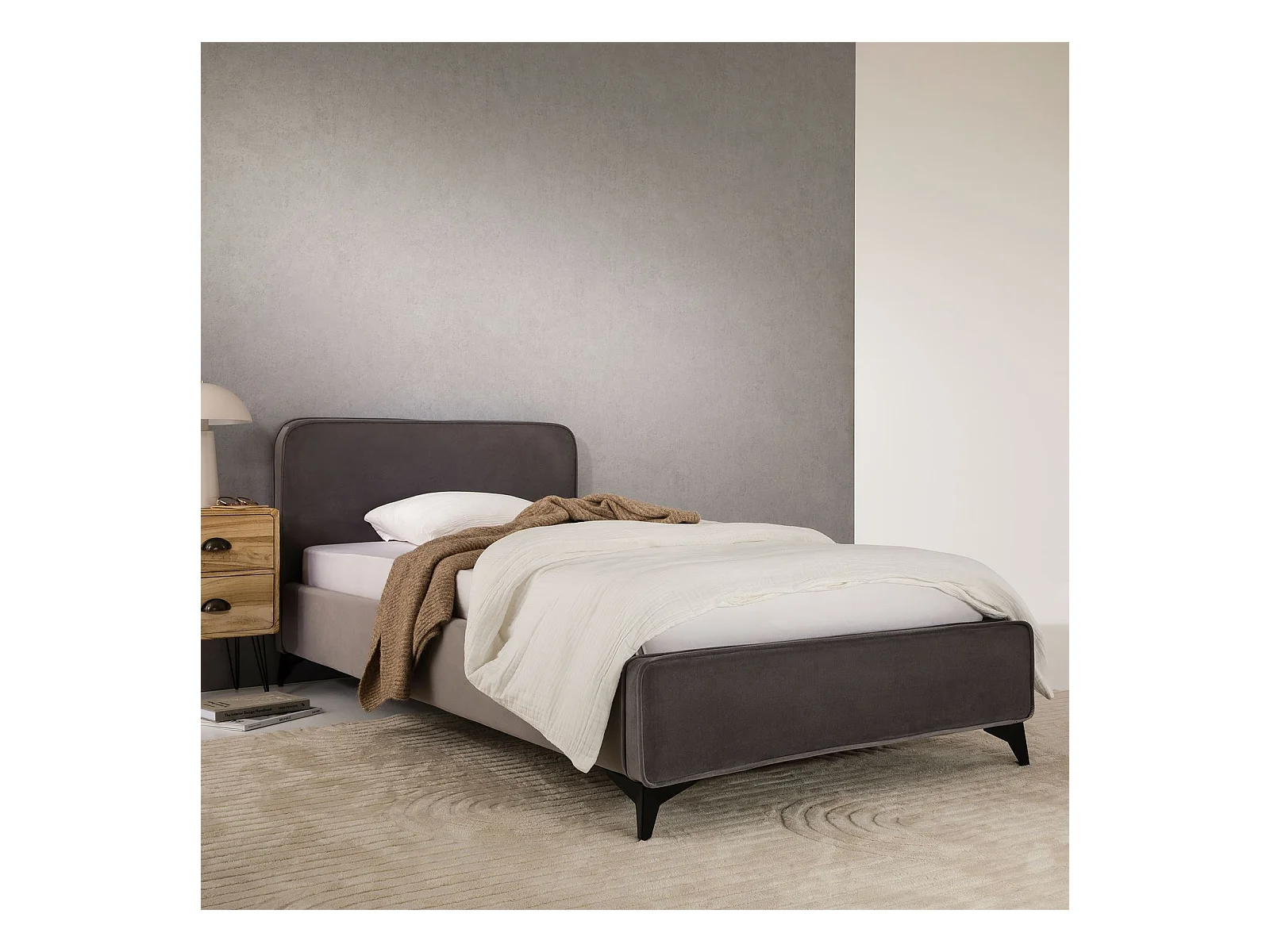 Lit simple RAVELLO 90x190 cm, Revêtement en tissu, Lit style moderne pour 1 personne, Cadre de lit en bois avec sommier inclus, Gris
