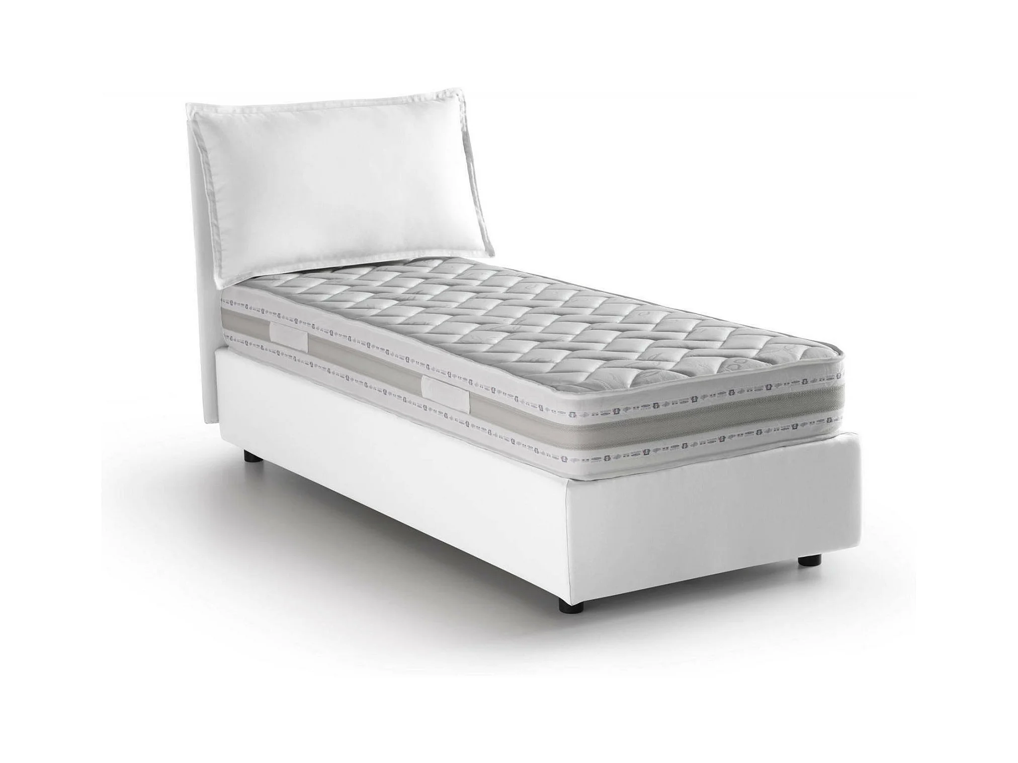 Lit simple Rossella, Lit coffre avec revêtement en tissu, 100% Made in Italy, Ouverture frontale, avec matelas 80x200 cm inclus, Blanc