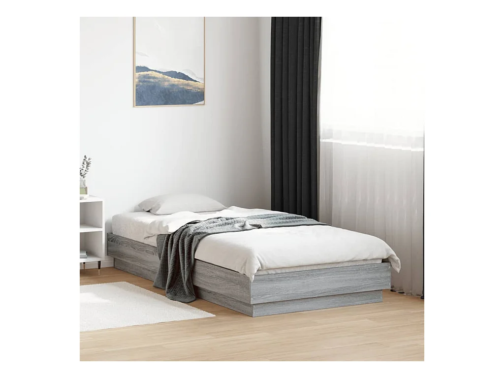 Lit simple sonoma gris 90x190 cm bois d'ingénierie FR88666