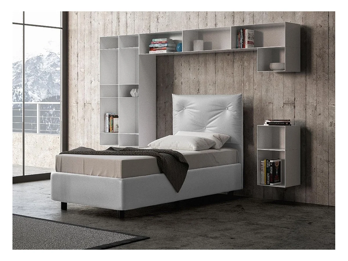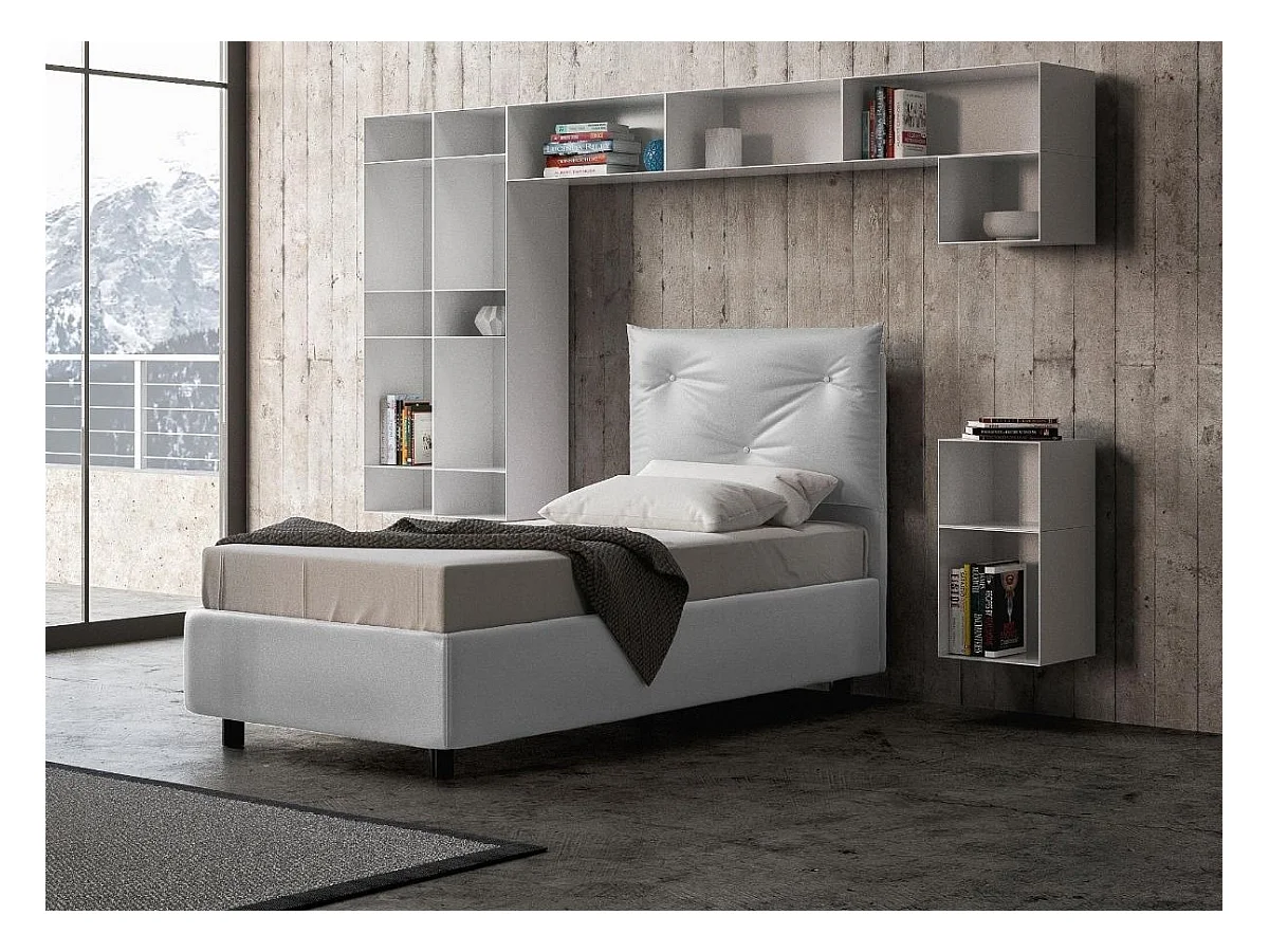 Lit simple sur mesure avec sommier simili cuir blanc Apango 80x190