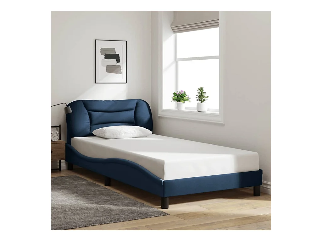 Lit simple + tête de lit Bleu 100 x 200 cm Tissu FR98228