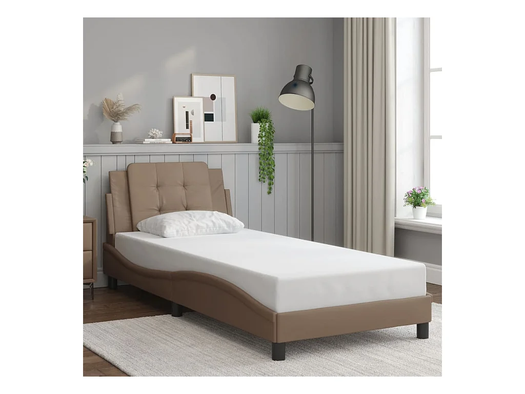 Lit simple + tête de lit Cappuccino 90x200 cm Similicuir FR29467