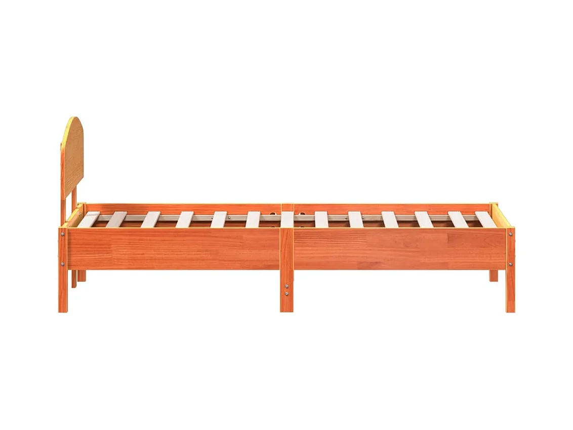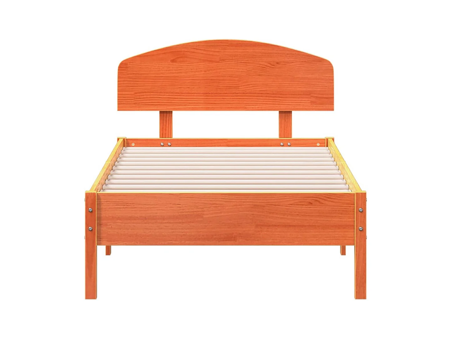 Lit simple + tête de lit cire marron 75x190 cm bois de pin FR46342