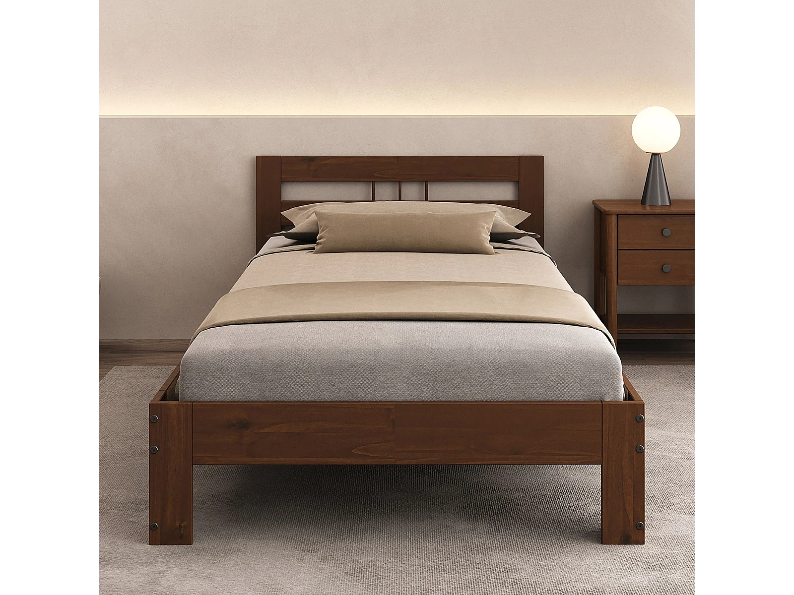 Lit simple THEO 90 x 200 cm lit pour enfant en pin massif coloris châtaignier, avec tête de lit