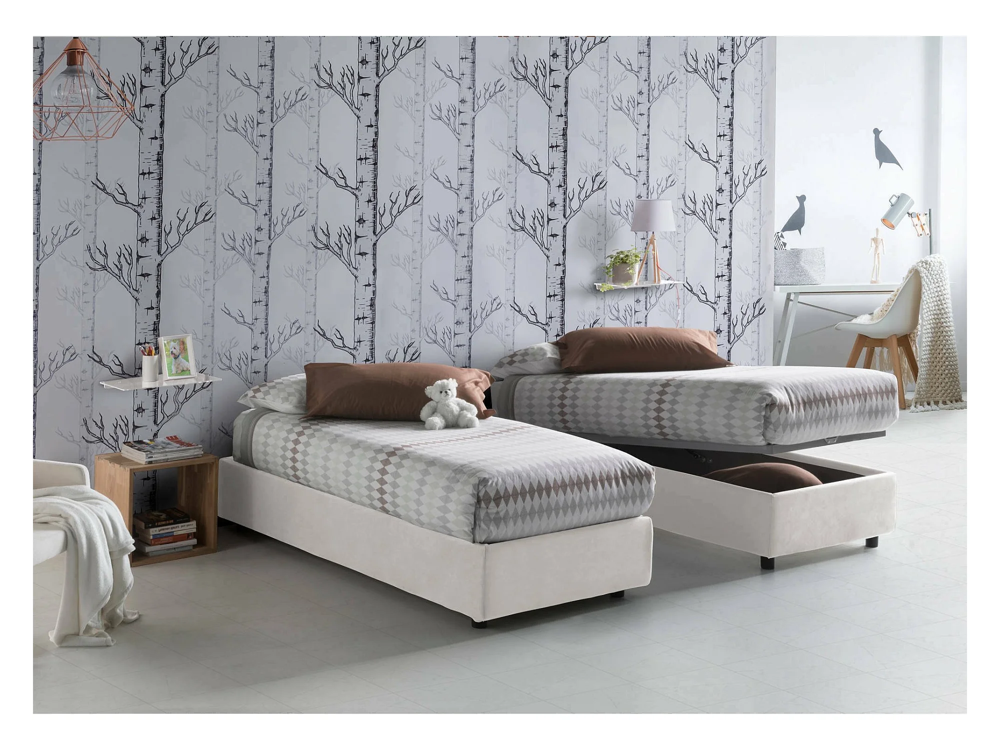 Lit simple Valentina, Lit coffre avec revêtement en tissu, 100% Made in Italy, Ouverture frontale, avec matelas 90x200 cm inclus, Blanc