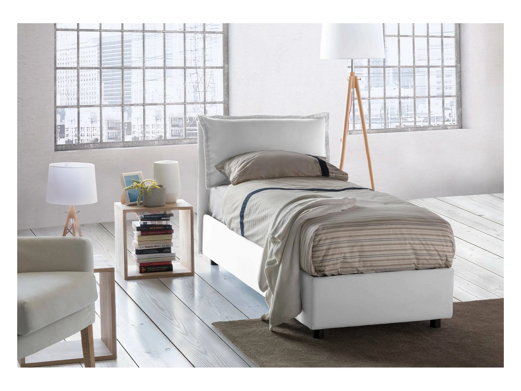 Lit simple Dpal, Lit coffre avec revêtement en tissu, 100% Made in Italy, Ouverture frontale, adapté pour matelas 90x190 cm, Blanc