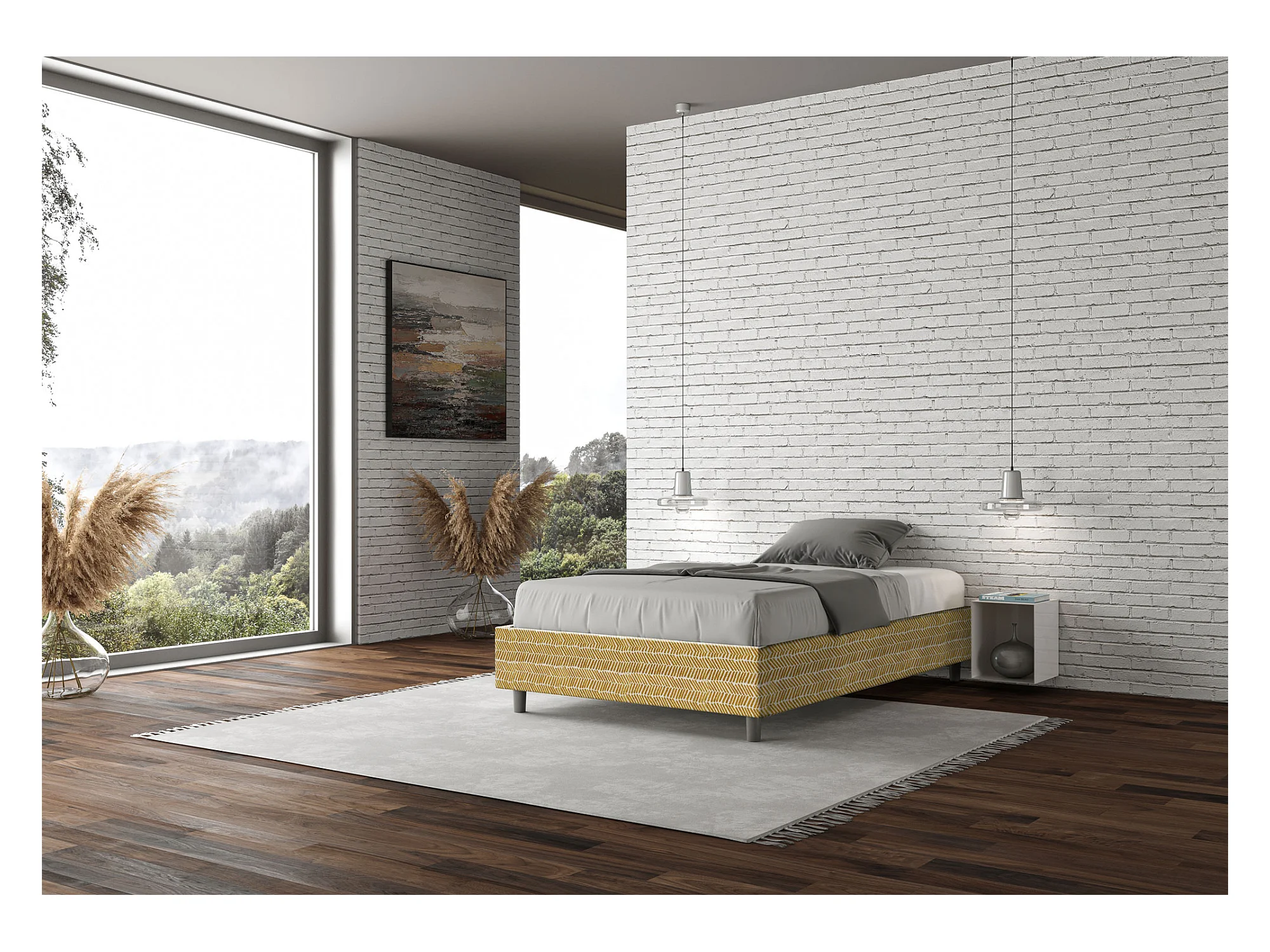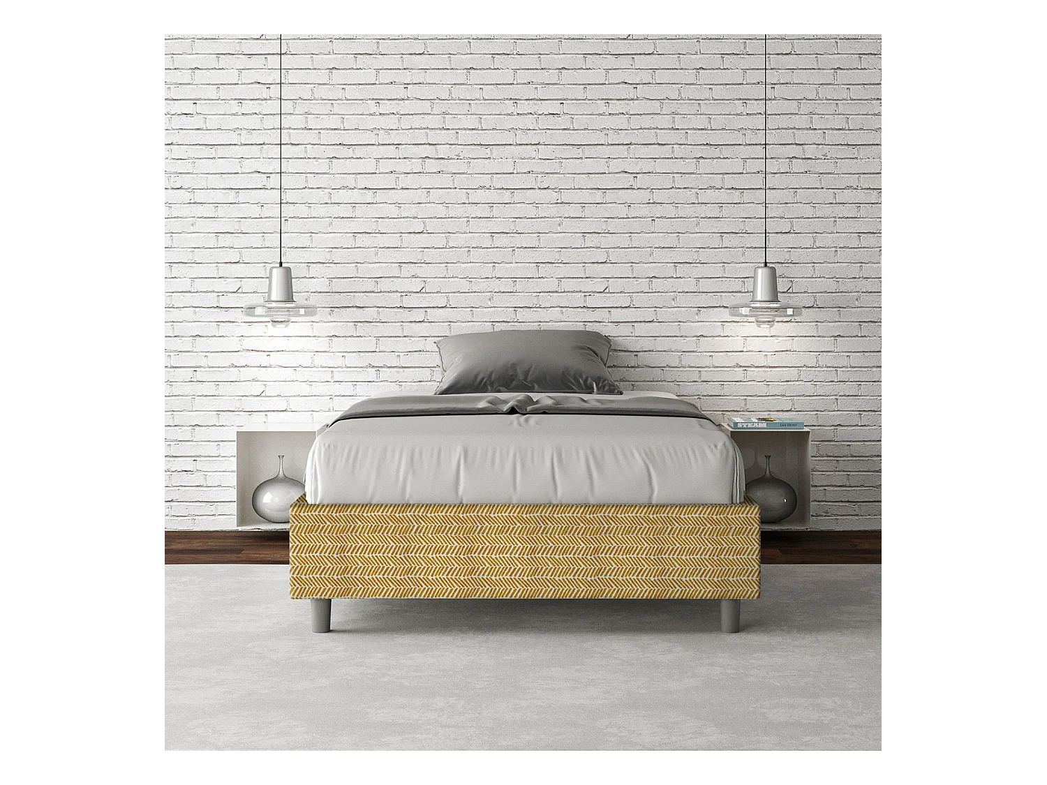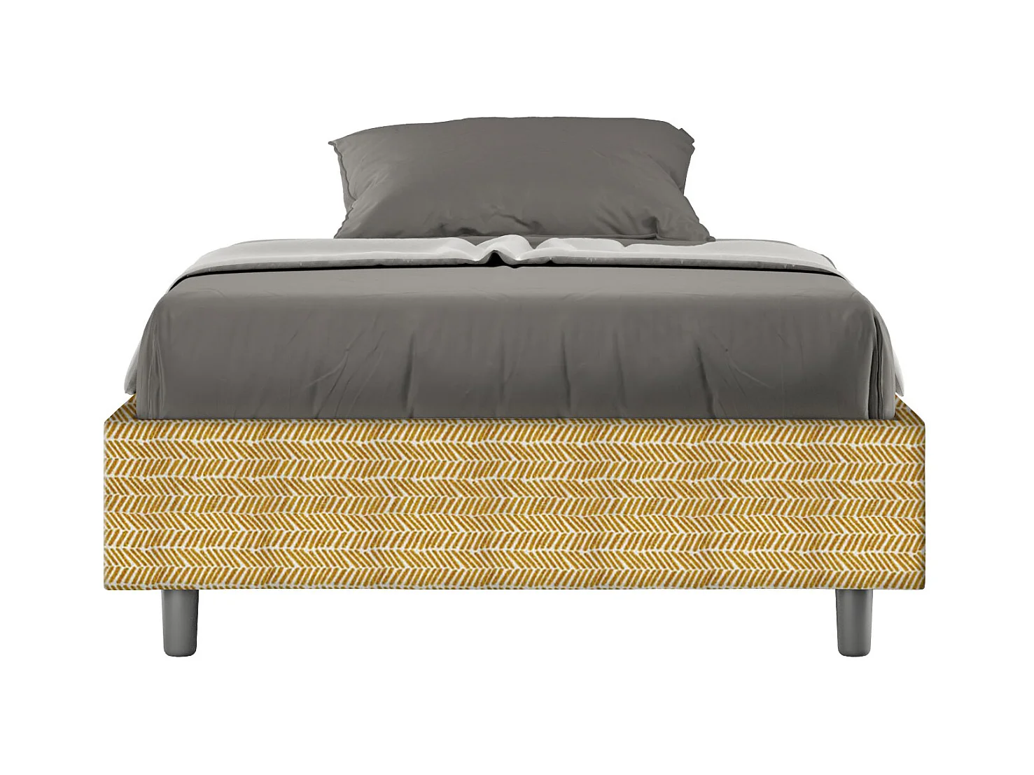 Cadre de lit 1 place et demi avec sommier rembourré 120x190 tissu Aragona 3 jaune Azelia