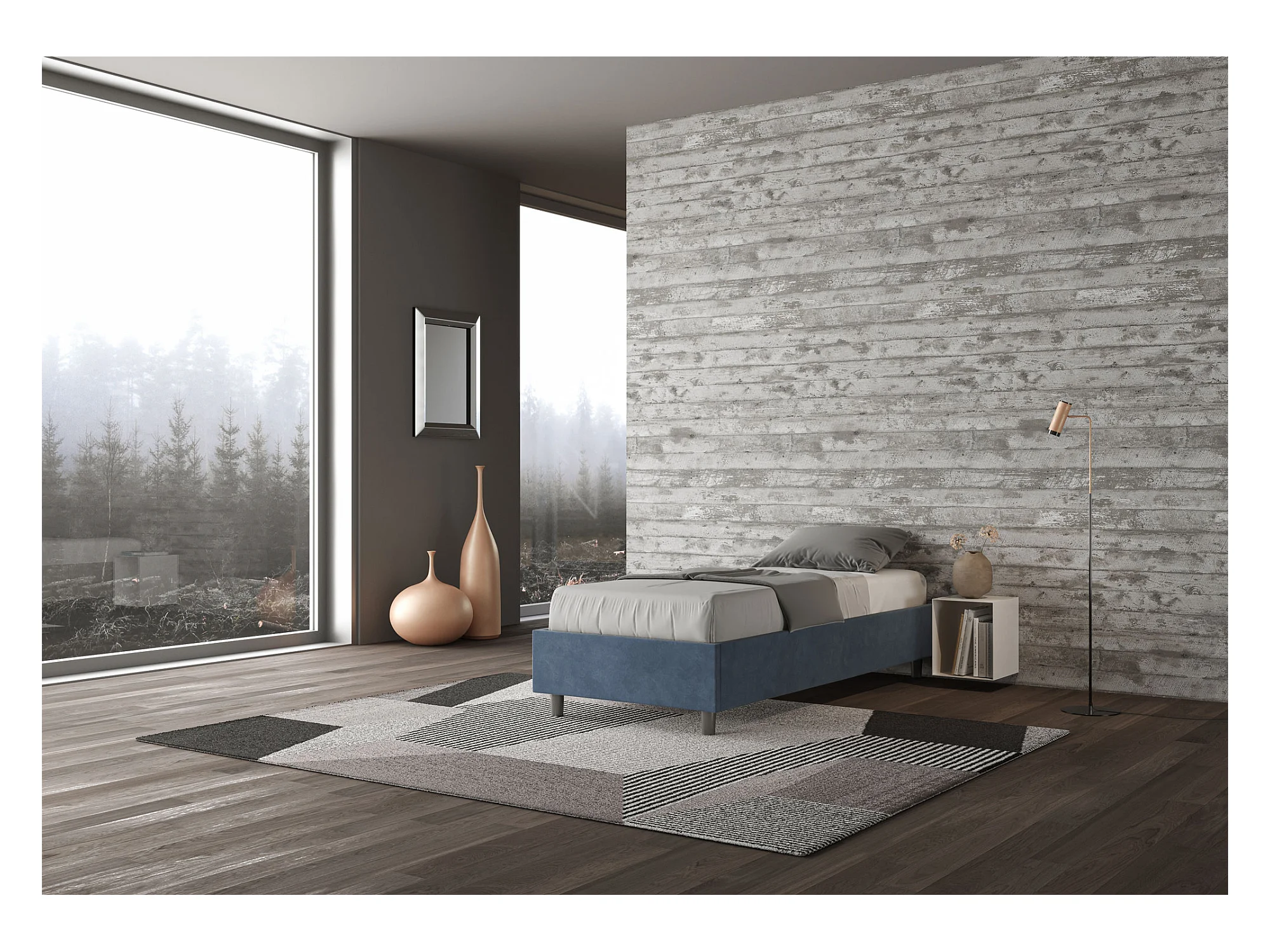 Lit Sommier avec sommier capitonné 80x190 Azelia microfibre bleu