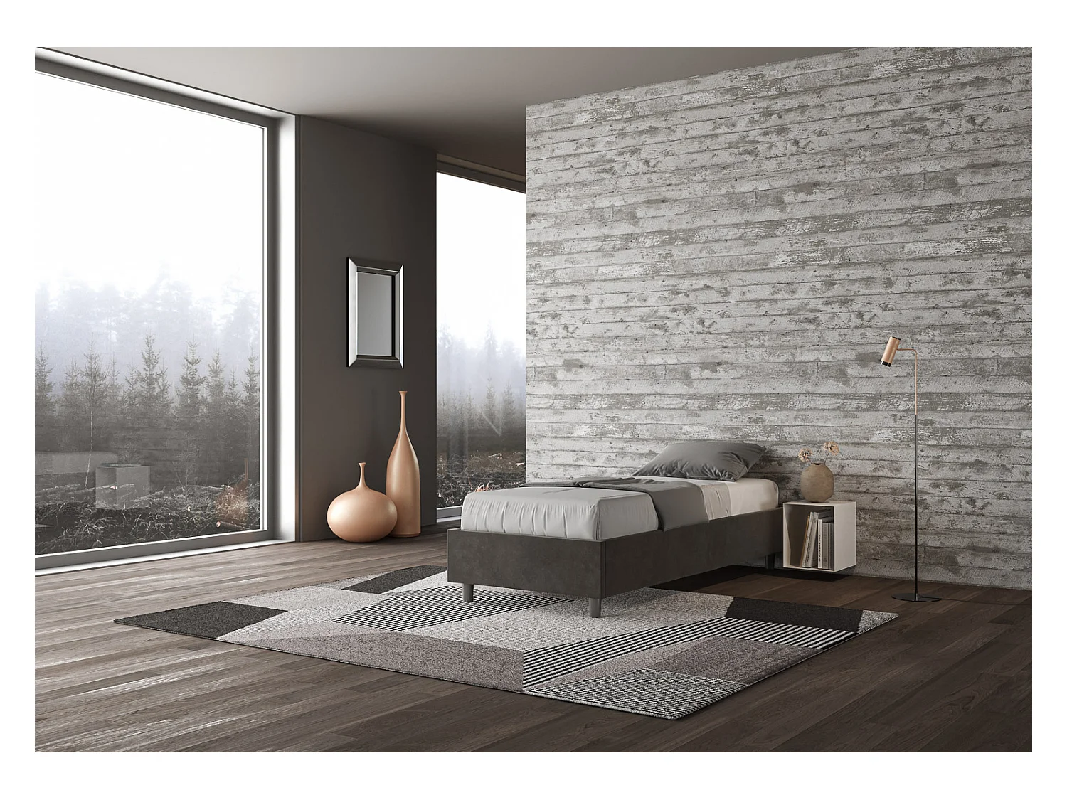 Lit Sommier avec sommier capitonné 80x200 Azelia microfibre gris