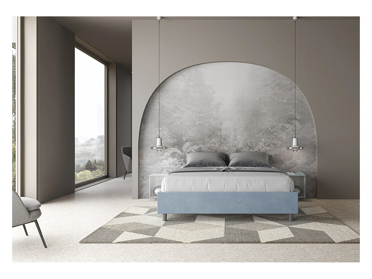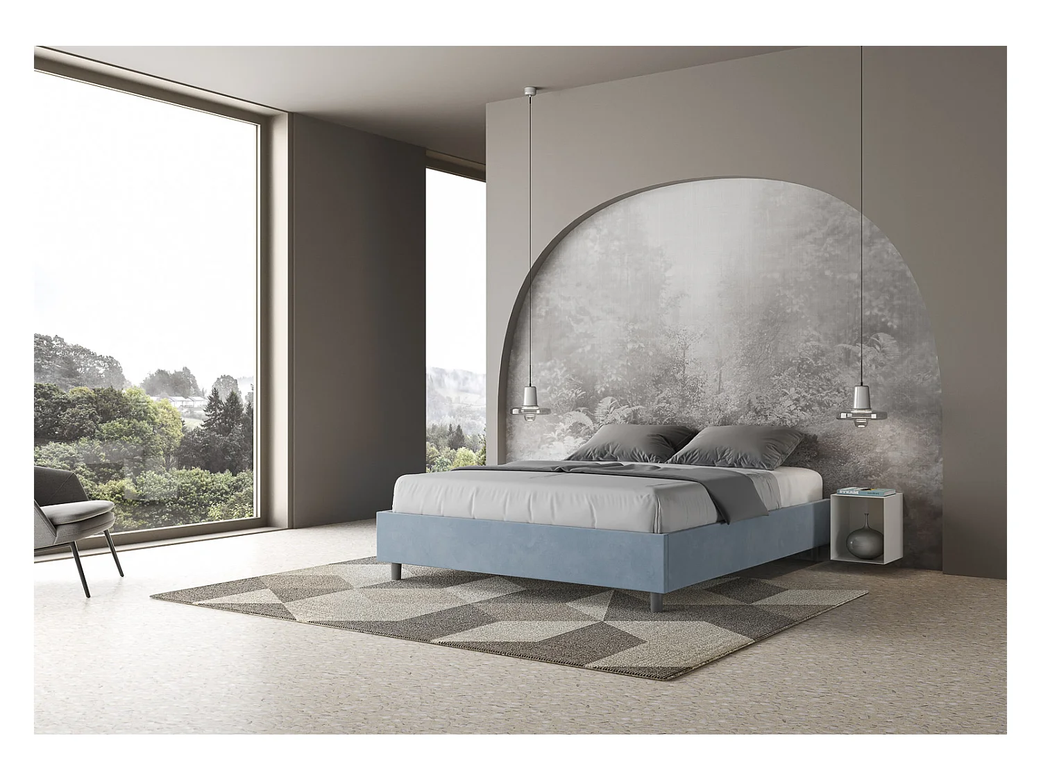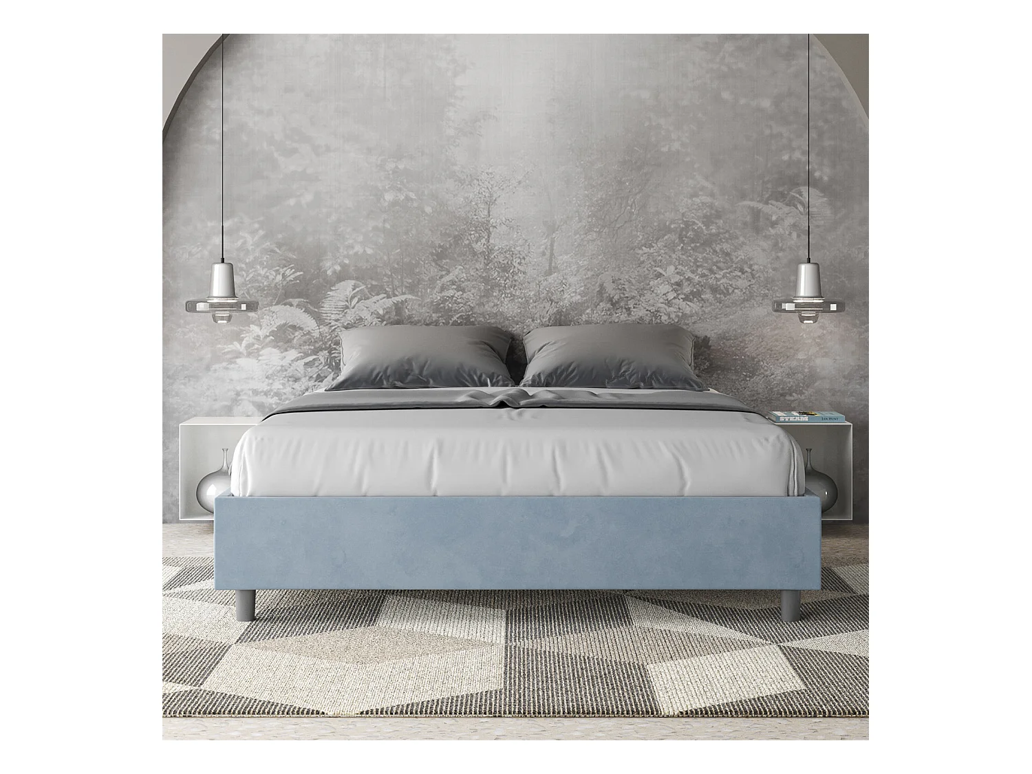 Lit sans sommier rembourré 160x190 microfibre bleu clair Azelia