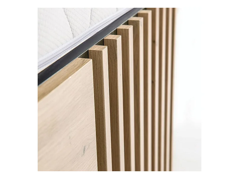 Lit style chêne 160 x 200 cm avec coffre de rangement Hendall